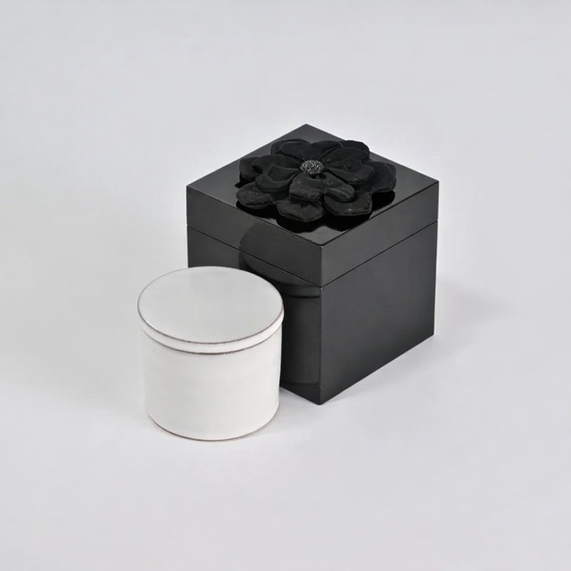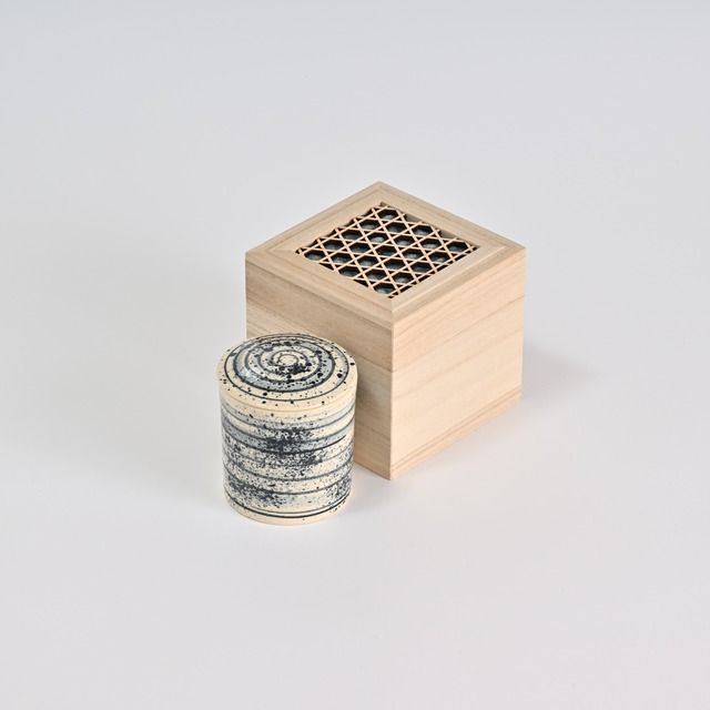 【陶器付きタイプ】 ●サイズ 幅115mm × 奥行115mm × 高さ115mm ●素材 桐箱/絹100%(装飾部) ●陶器 大谷焼(国指定 伝統的工芸品) CUBEメモリアル®は、想い出の品を美しく保管するために設計された、桐箱のメモリアルボックスです。 立方体のすっきりとしたフォルムと、四つ葉の意匠を取り入れた装飾により、日常の空間にも自然と馴染む佇まいに仕上げています。 桐材は軽量でありながら耐久性に優れ、湿気の影響を受けにくい特性を持つため、古くから着物や漆器、陶磁器などの保管にも用いられてきました。 長期保管にも適した素材として、現在も多くの工芸品に採用されています。 本商品には、大谷焼の陶器が付属しています。 外装の桐箱と内器を組み合わせた構造により、用途に応じた収納が可能な仕様となっています。 棚やデスクなど、さまざまな場所に設置しやすいコンパクトサイズで、インテリアの一部としても違和感なくお使いいただけます。 ◆ 制作に携わる職人・工房 ・意匠(村井圭子氏) 蓋上部のダブルクローバー装飾は、パッチワーク師範科卒業のパッチワーク作家が一つひとつ丁寧に仕上げています。 ・桐箱(玉田名央基氏監修) 昭和29年創業の桐箱製造会社。鏡台や工芸品用引き出しや漆器や陶磁器などを手掛ける工房で、長年培った技術と知見を生かした製作を行っています。 ・塗装(江淵達人氏) 阿波の名工として知られる塗装職人。木地の風合いを生かした仕上げを担当しています。 ・陶器(大西直紀氏) 大谷焼窯元 大西陶器。大正8年創業の窯元で、藍甕や睡蓮鉢などの製作も行う陶芸工房です。 当社の製品はすべて徳島県内の工房にて、熟練職人が一つひとつ手作業で仕上げています。 素材選びから仕上げまで、品質を重視した製作体制のもとでお届けしています。 お手入れの際は、湿気の多い場所を避け、乾いた柔らかい布で優しく拭いてください。 ※天然木製品のため、水濡れや高湿度環境での保管は変色・変形の原因となります。 ※本商品は記念品・オーダーメイド作品であり、心のケアや宗教的効能を謳うものではありません。