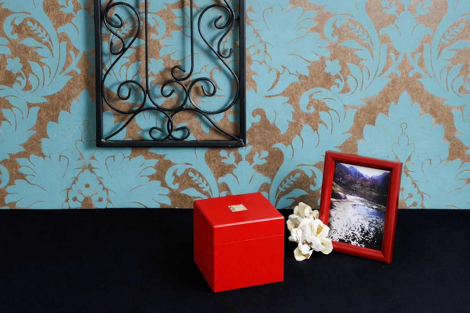 【CUBEメモリアル®】 雅-miyabi- 黒・赤花付き 110mm角