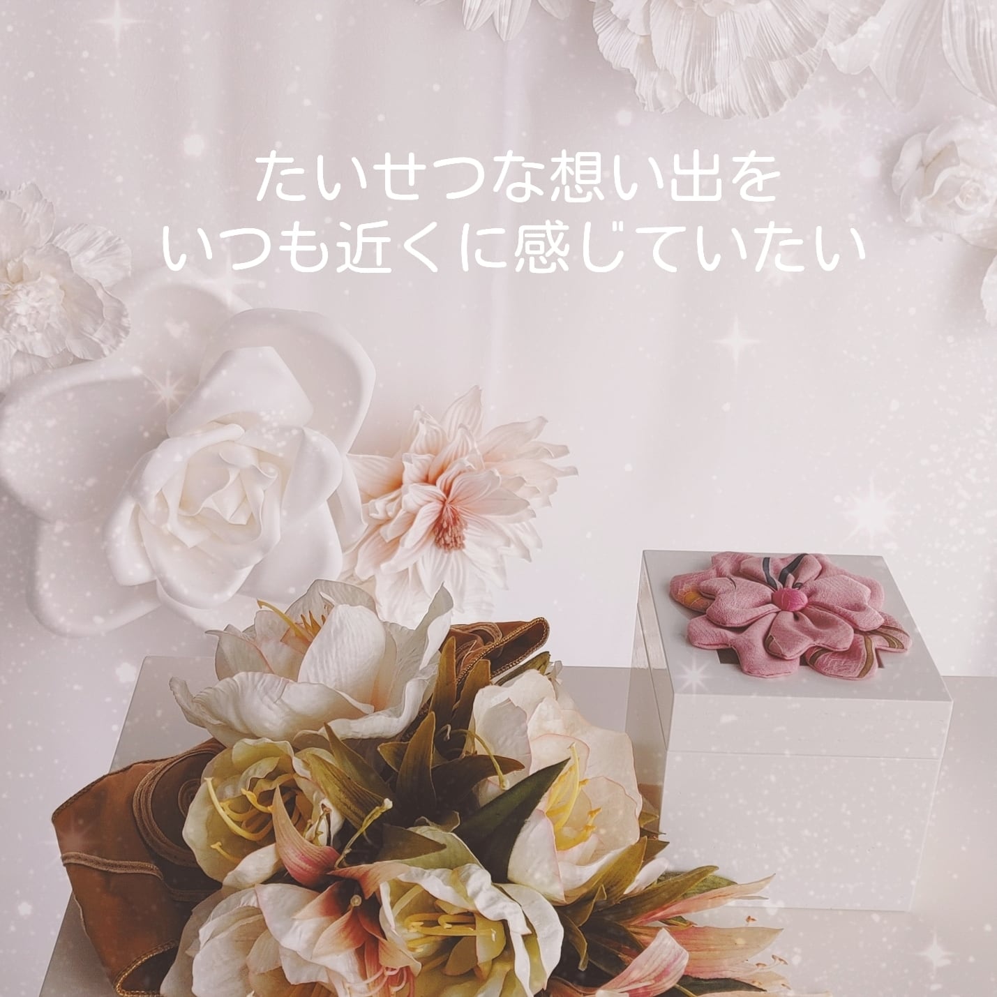 【CUBEメモリアル®】 雅-miyabi- アイボリー・花付き 110mm角