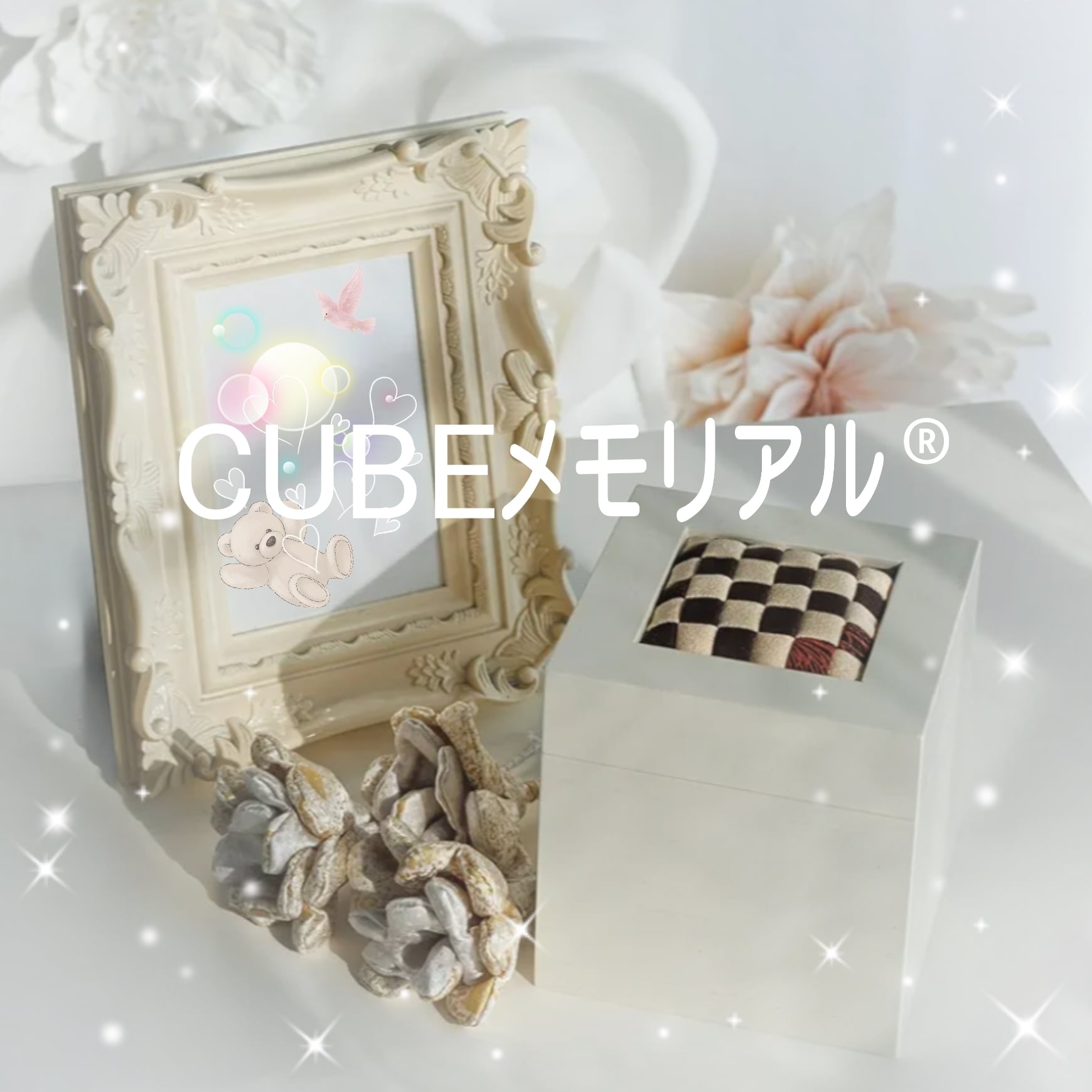 【CUBEメモリアル®】ホワイト(オリジナル装飾・陶器付) 115mm角