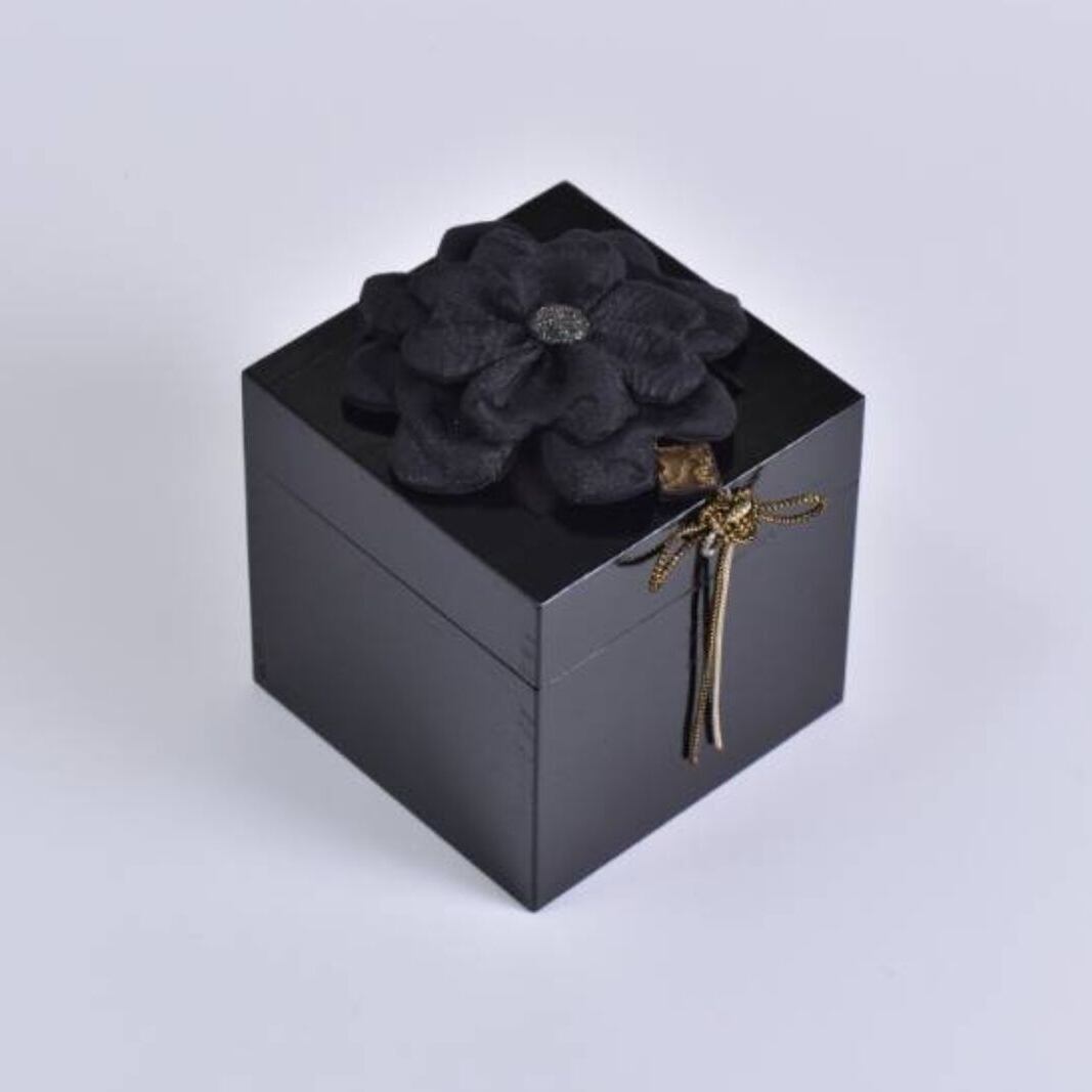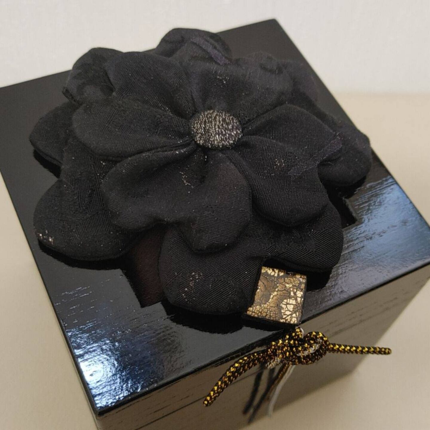 【CUBEメモリアル®】ブラック花付き(オリジナル装飾・陶器付) 115mm角