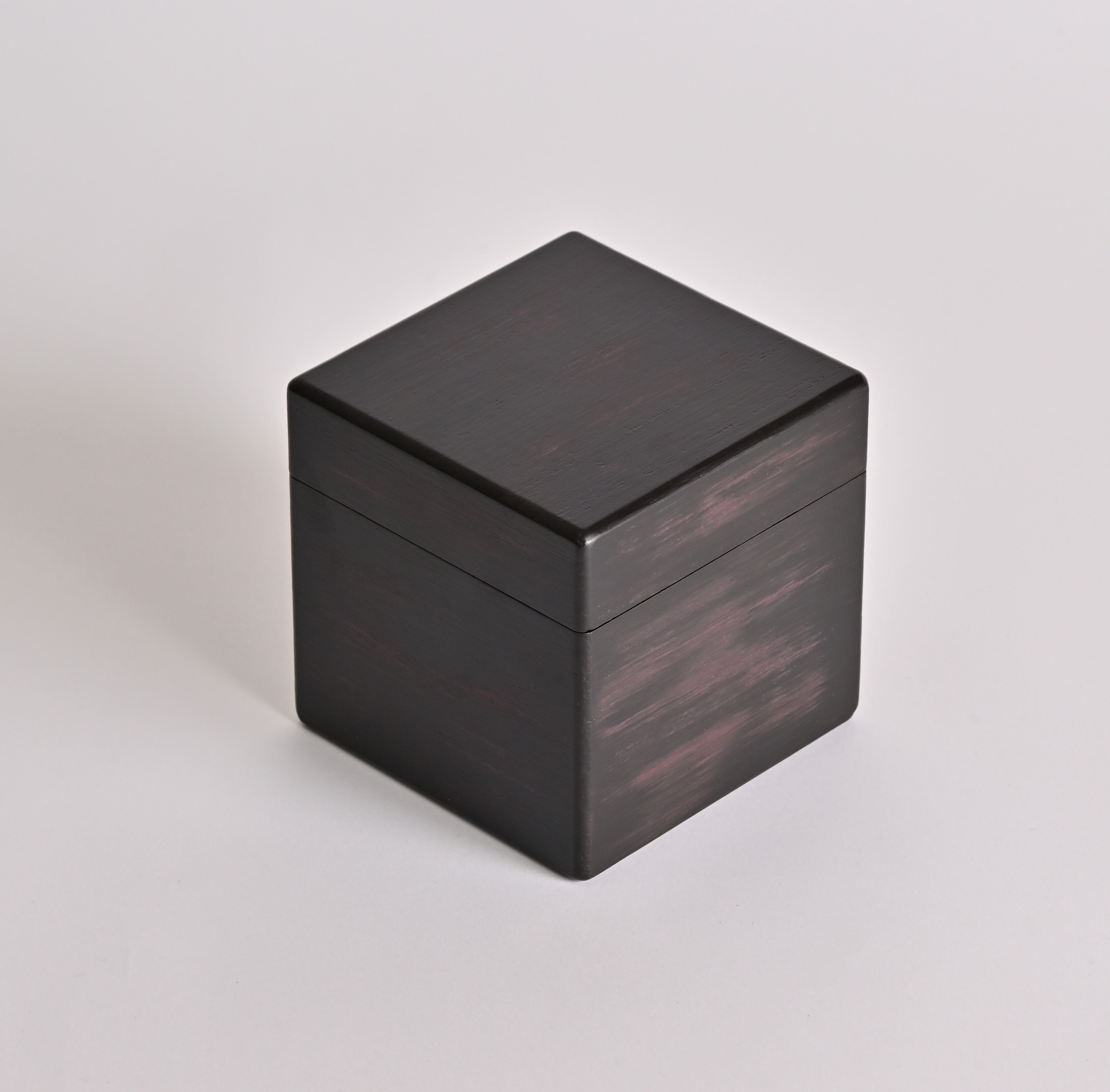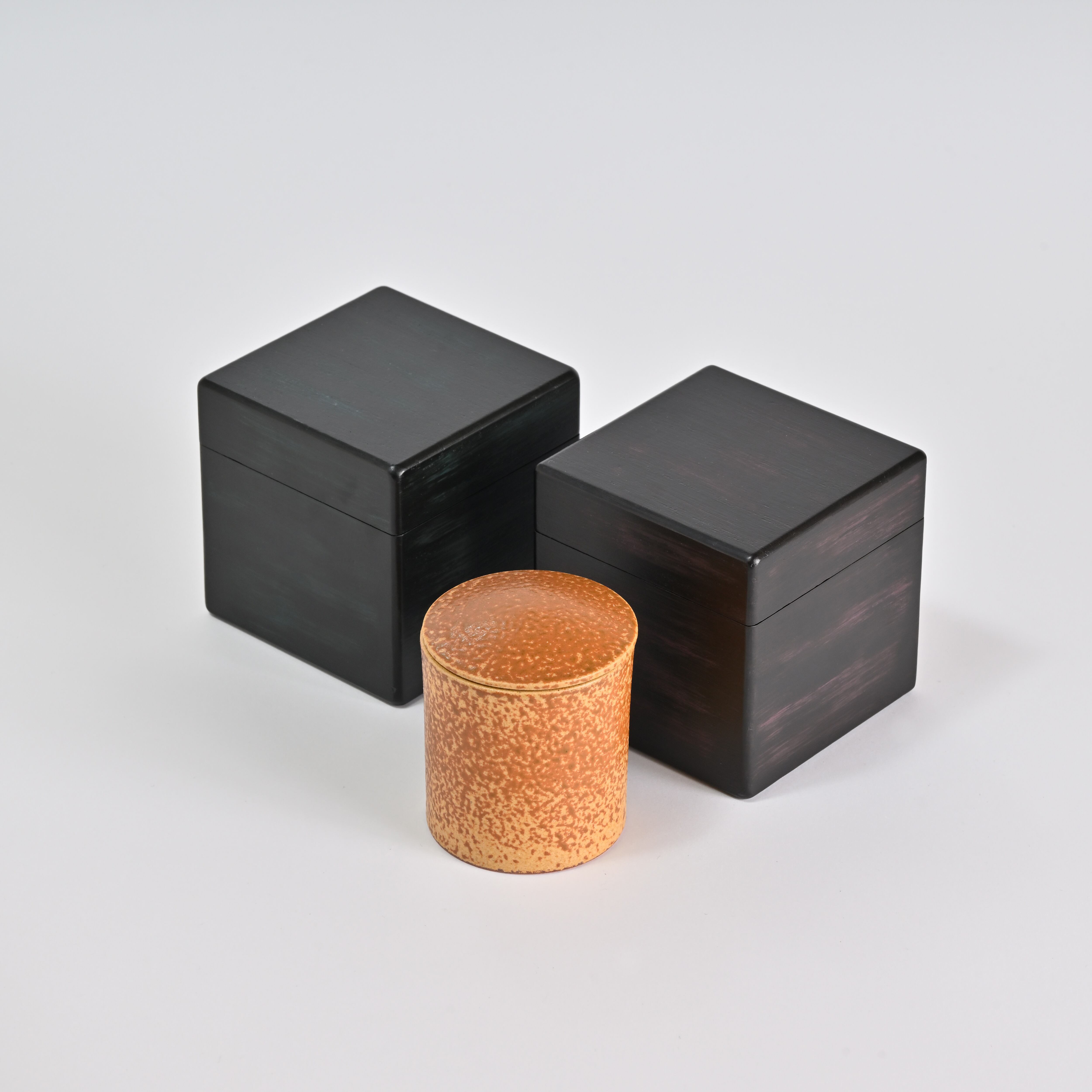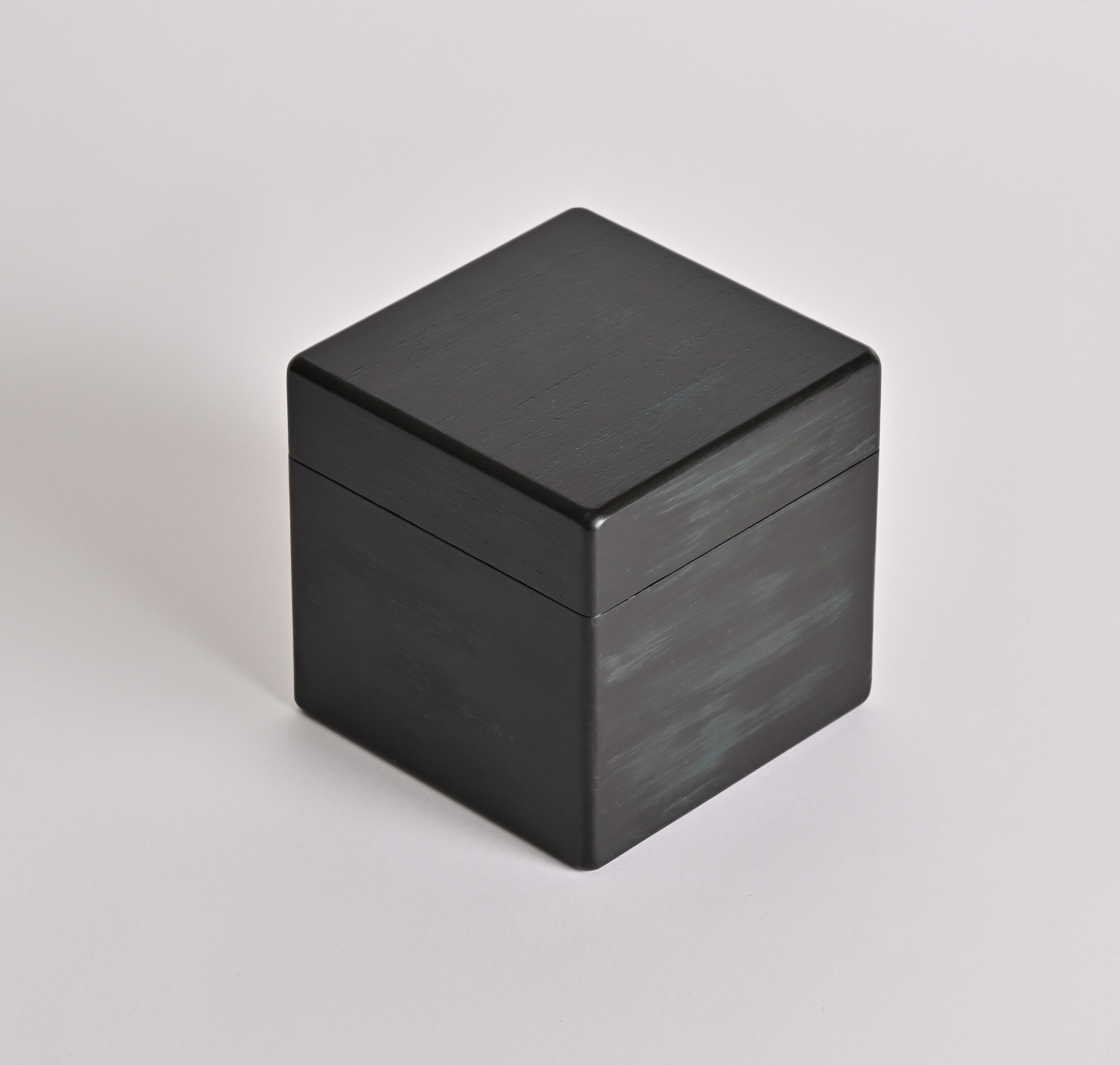 日常の空間にも自然と馴染む立方体フォルムと、落ち着いた色合いの漆仕上げが特徴です。